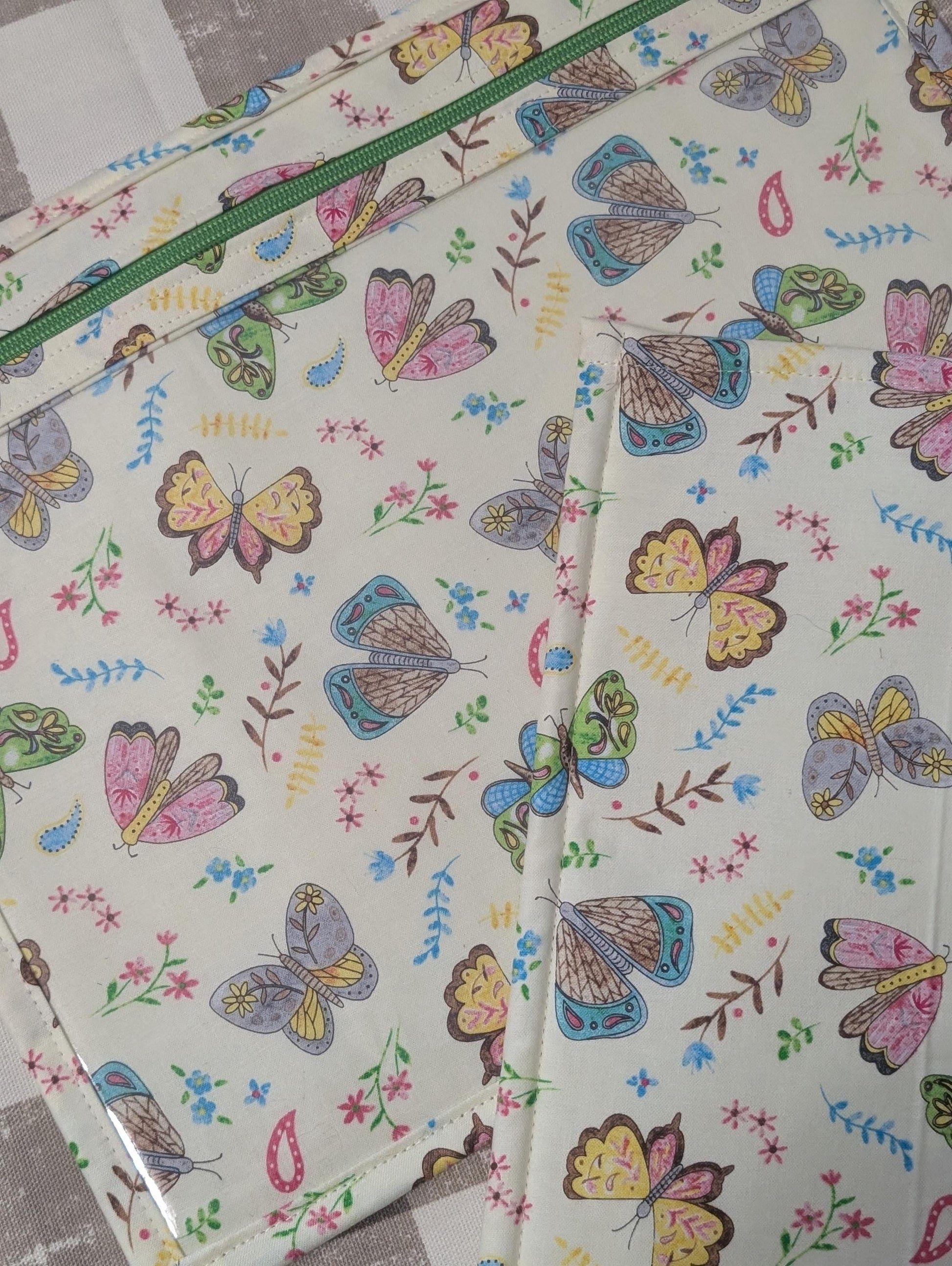 Butterfly Vinyl Front Project Bag for Cross Stitch Needlepoint Embroidery WIP Organizer Scrapbooking