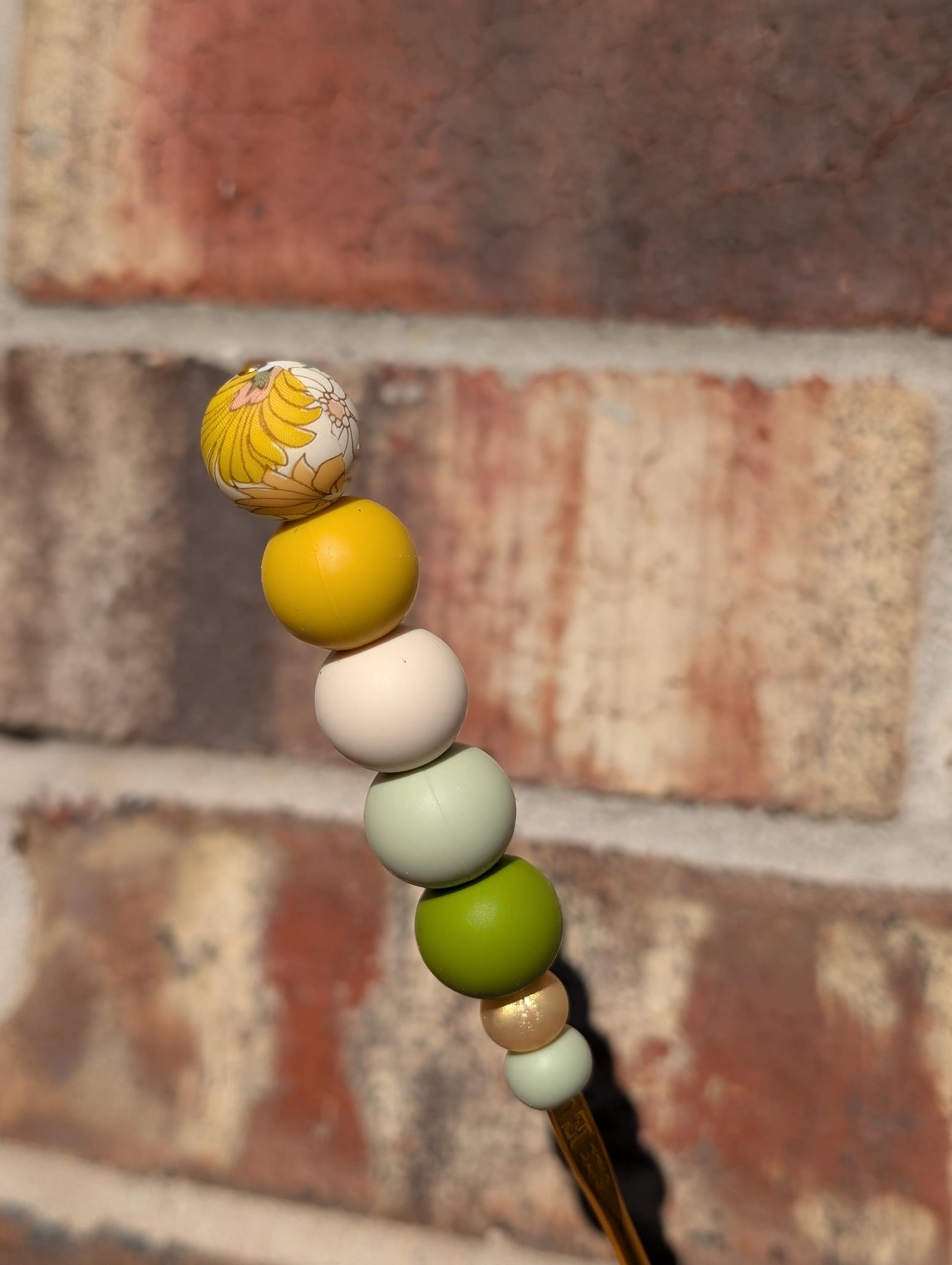 Green Florals Crochet Hook Silicone Beads Focal Topper Ergonomic Handle