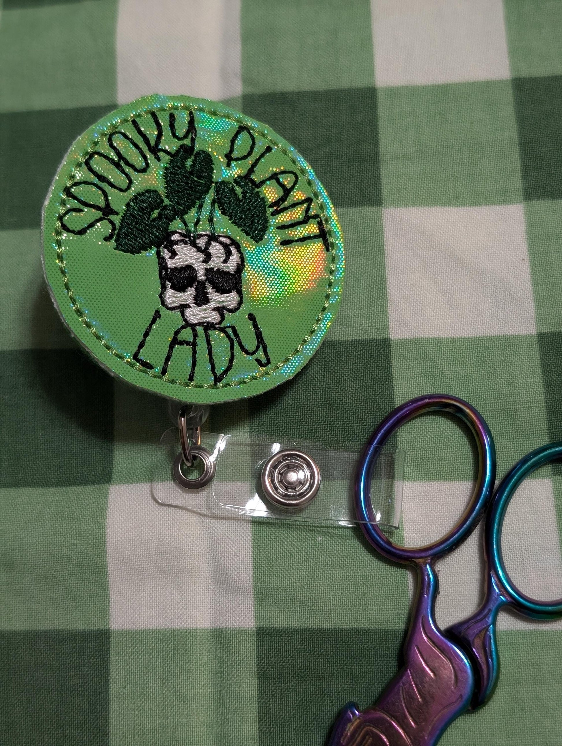 Scissor Keeper. Cute felties ordered from Amber's Boutique. Personally cut and attached to badge reels by me for a cute way to keep track of your scissors. I was tired of losing my scissors in the couch cushions or walking away with my children while I was working.