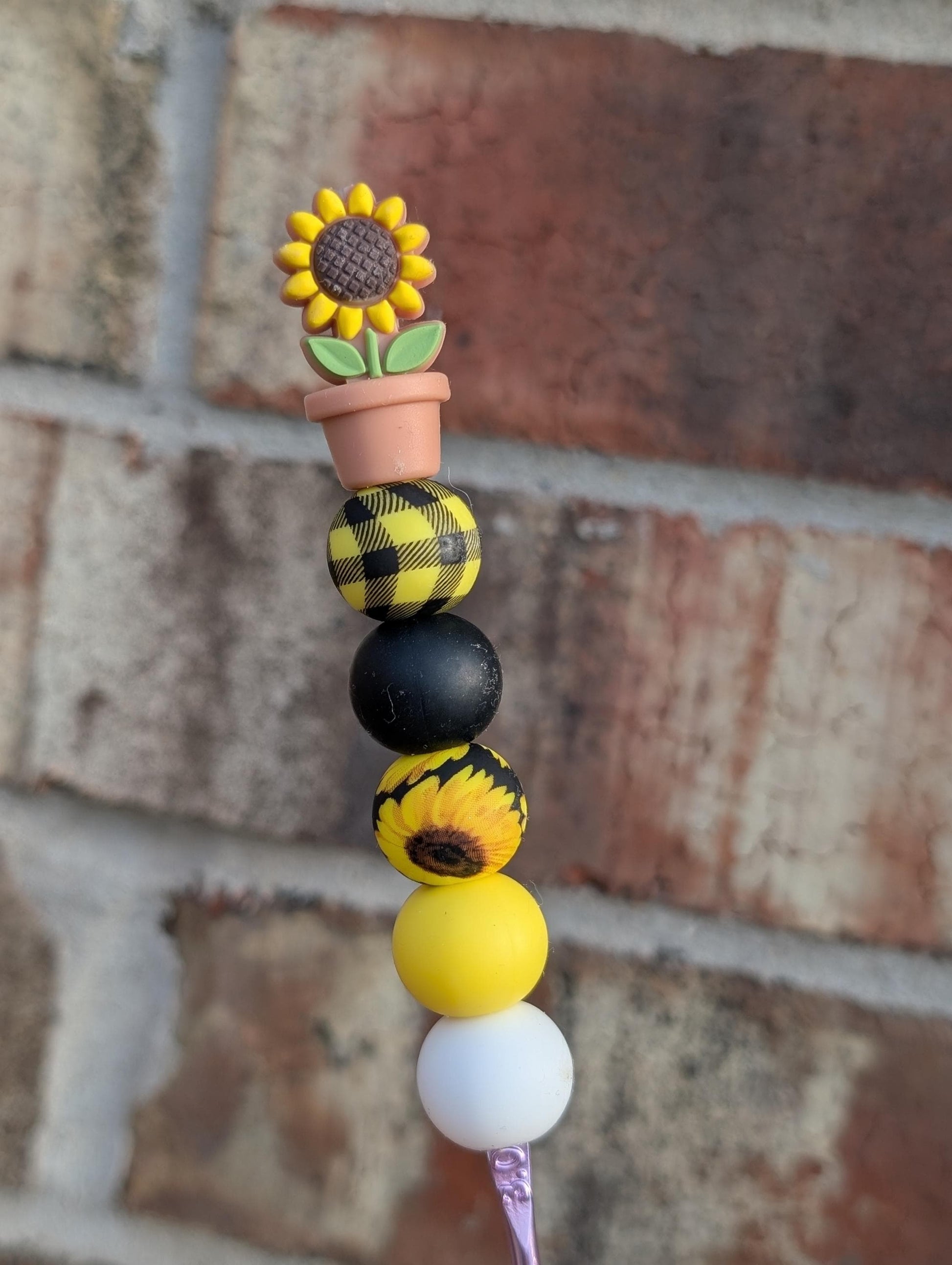 Sunflower in Pot Crochet Hook Silicone Beads Focal Topper Ergonomic Handle