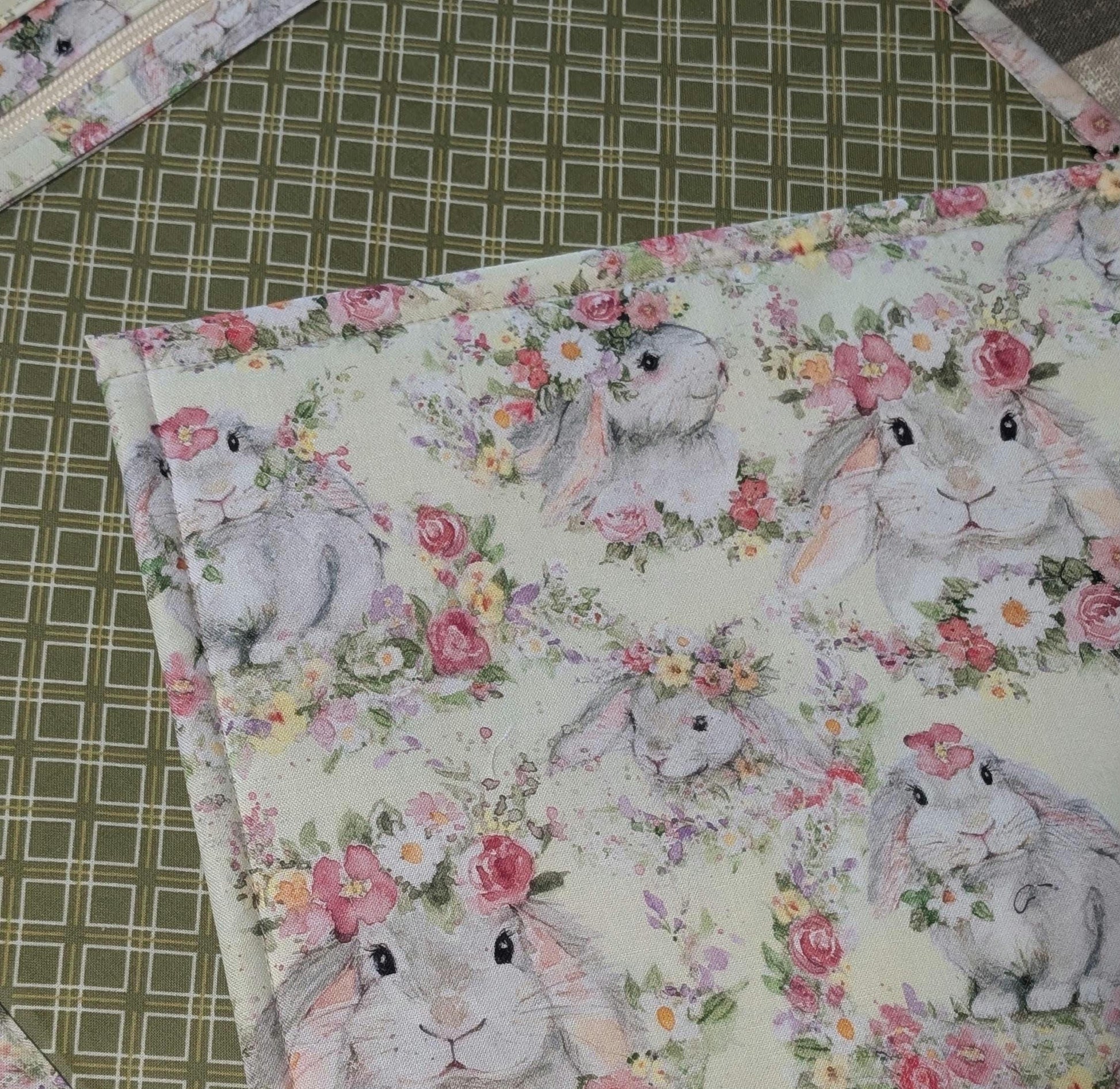 Watercolor Bunny Vinyl Front Project Bag for Cross Stitch Needlepoint Embroidery WIP Organizer Scrapbooking
